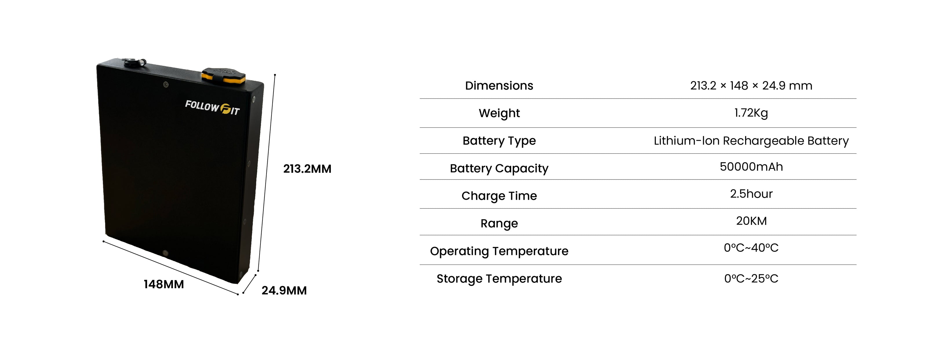 Swap and go with a removable 50,000mAh lithium battery—fast charging in about 2.5 hours, delivering up to 20km range or 6–8 hours of reliable, uninterrupted power.